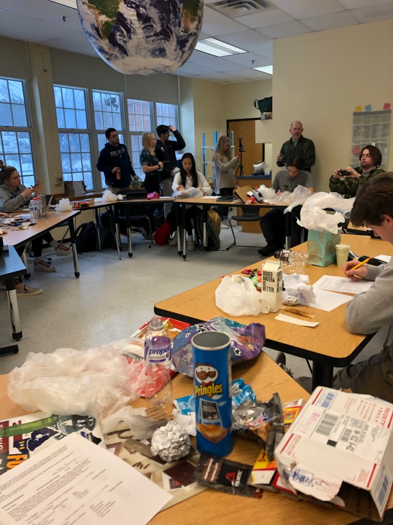 The category of municipal solid waste that seemed to be most abundant on all of the desks in the room was plastic packaging. Especially, in among the age group of teenagers who are constantly hungry